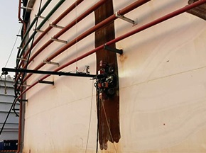 德高潔應(yīng)市場及客戶需求,推出了高效、環(huán)保、可遠(yuǎn)程控制的RC360W-MG280儲罐除銹機(jī)器人,機(jī)器人搭載高壓水射流除銹、真空抽排固液分離系統(tǒng)、爬壁機(jī)器人三大模塊于一身;使用高壓水射流特有的沖擊動能,在無腐蝕無磨損的情況下,去除儲罐外壁表面銹垢及附著物。[查看詳情]